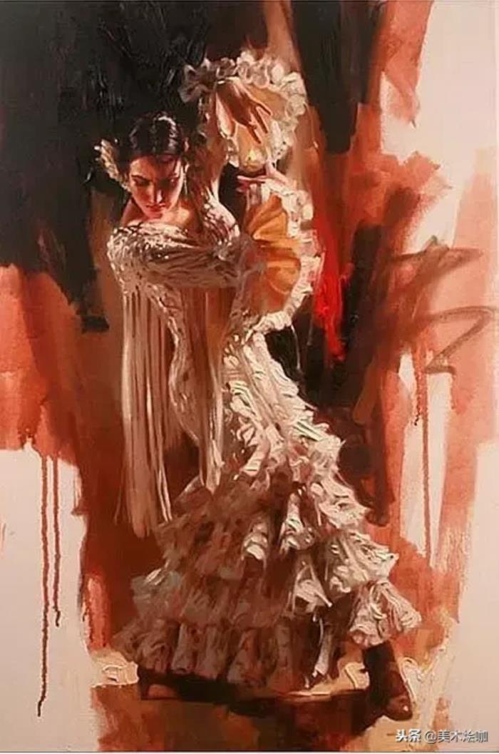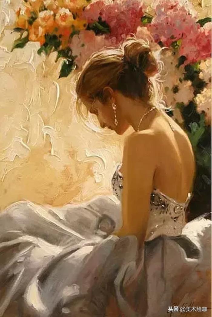 ▲李察的绘画,用笔肯定,上色大胆,厚薄兼顾,形态优雅,如同诗一般表达了他所描绘的对象。他油画技术精湛,作品是前拉斐尔的浪漫主义及当代表现主义、抽象概念的结合,形成自已独特的、有深度的风格。