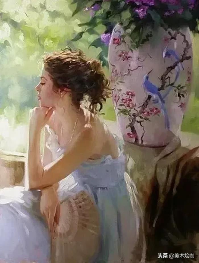▲用绝对的漂亮来形容李察的画是一点不过分,用李察自已的话来说:“当我画画的时候,我希望对观众的吸引力是超越画面所看到的,是连贯和分享人们的体会,能一起点头说 ---- 是的,这就是青春,象美丽的玫瑰,如清晨的阳光。”