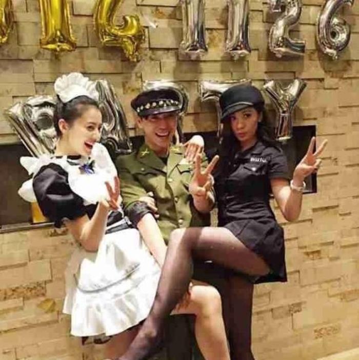 高圆圆在婚前的单身派对上穿着女仆装,俏皮可爱。贾静雯则打扮成女警模样,穿着黑丝,造型性感。