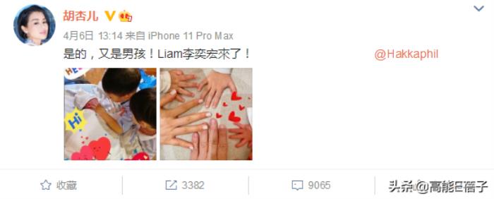 6日,胡杏儿官宣自己的第三个宝宝,又是男孩。