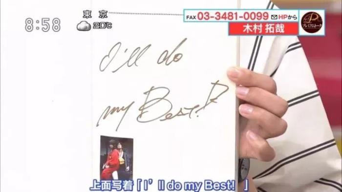 木村拓哉虽然是顶级天王,但多年从未放弃拼命努力,他每接一部戏,都会在台本上写下:I’ll do my best。