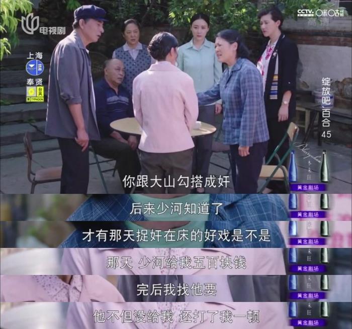 《绽放吧百合》正在影视八套黄金档热播,在前面的剧情中,大山因董少河设计陷害,与崔寡妇被捉奸在床,而这消息也被董少河故意透露给百合。