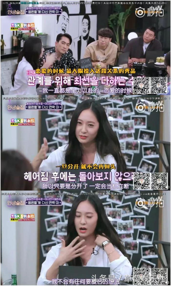 郑秀晶也补充道,不是说情侣之间吵完架就当机立断分手,而是在双方达成一致协议分手后,才不做任何留恋!