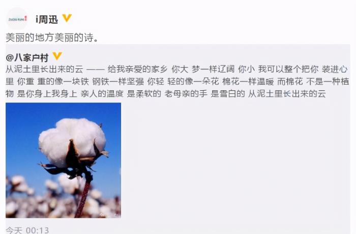 2021年3月26日,因为多个品牌地址新疆棉花,陈建斌特别作诗一首来支持家乡,网友大赞他的诗写得好。