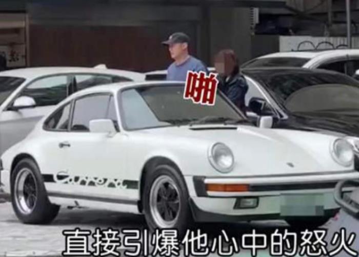 在停车场的阿姨看到两人争吵后,立马上前拉住正处于怒火中的余文乐,一边把他向后面扯,一边在不停劝说,但是余文乐还在怒火中,不仅丝毫不理会阿姨的劝说,还"啪啪"拍打车身,看起来脾气不是一般的大。