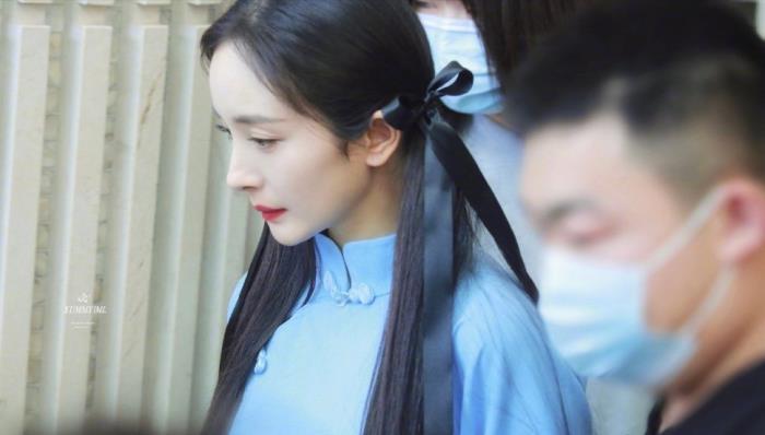 她扎着双马尾,穿着蓝色中山装,作着衣服民国时期的学生装扮,清纯又漂亮,少女感依旧。