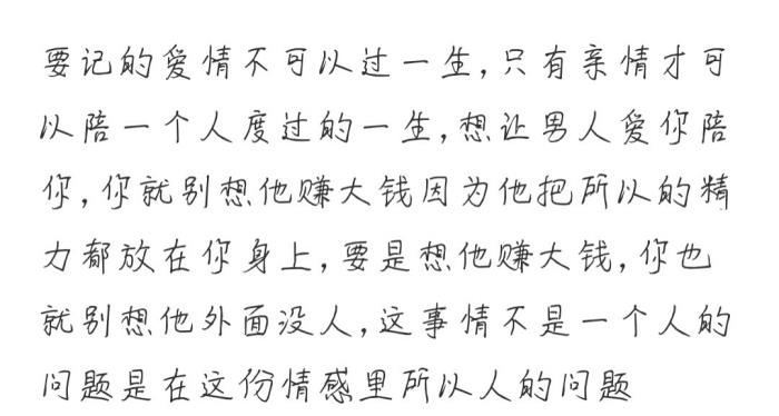 老婆是男人选择牵手终老的感情,而情人只是男人想及时行乐的人,他会给你很多承诺,但大多数不能兑现,他不会离婚却总是舍不得你离开,不是因为有多爱你,而是因为你是一个好备胎,呼之则来挥之即去,一个男人只有在寂寞的时候才会想你,那就不是爱,只是喜欢,喜欢和爱是有区别的,喜欢是想拥有你的现在,爱是和你一起计划未来,就好像你走在乡间的小路上看着树上开满了你喜欢的花,你想摘了它,是喜欢它迫不及待想得到它,而爱它是每天给它浇水呵护它。