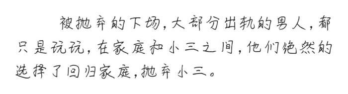原配记住:小三永远只是旅馆,你才是家,男人只是在家住久了想出去住两天,家常便饭吃久了想吃两天麻辣烫而已,只要他还记得回家的路,为了家庭为了孩子为了你们的一切,能假装不知道就假装不知道。记得做一个聪明睿智的女人!