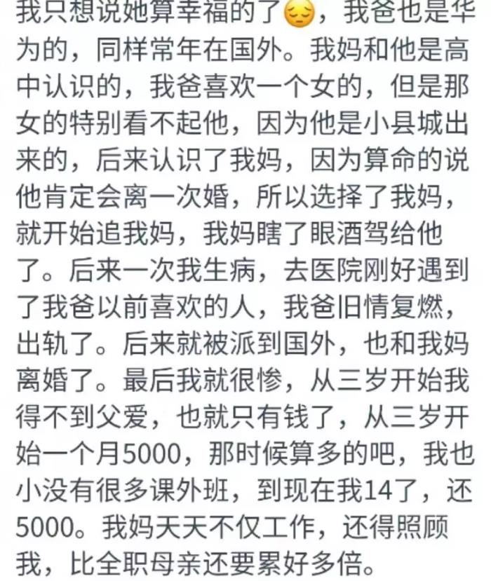 上面那个14岁女孩面对父母离婚这件事是怎么想的,已经说得足够真实和诚恳了,我相信能给大家带来一些不一样的思考。