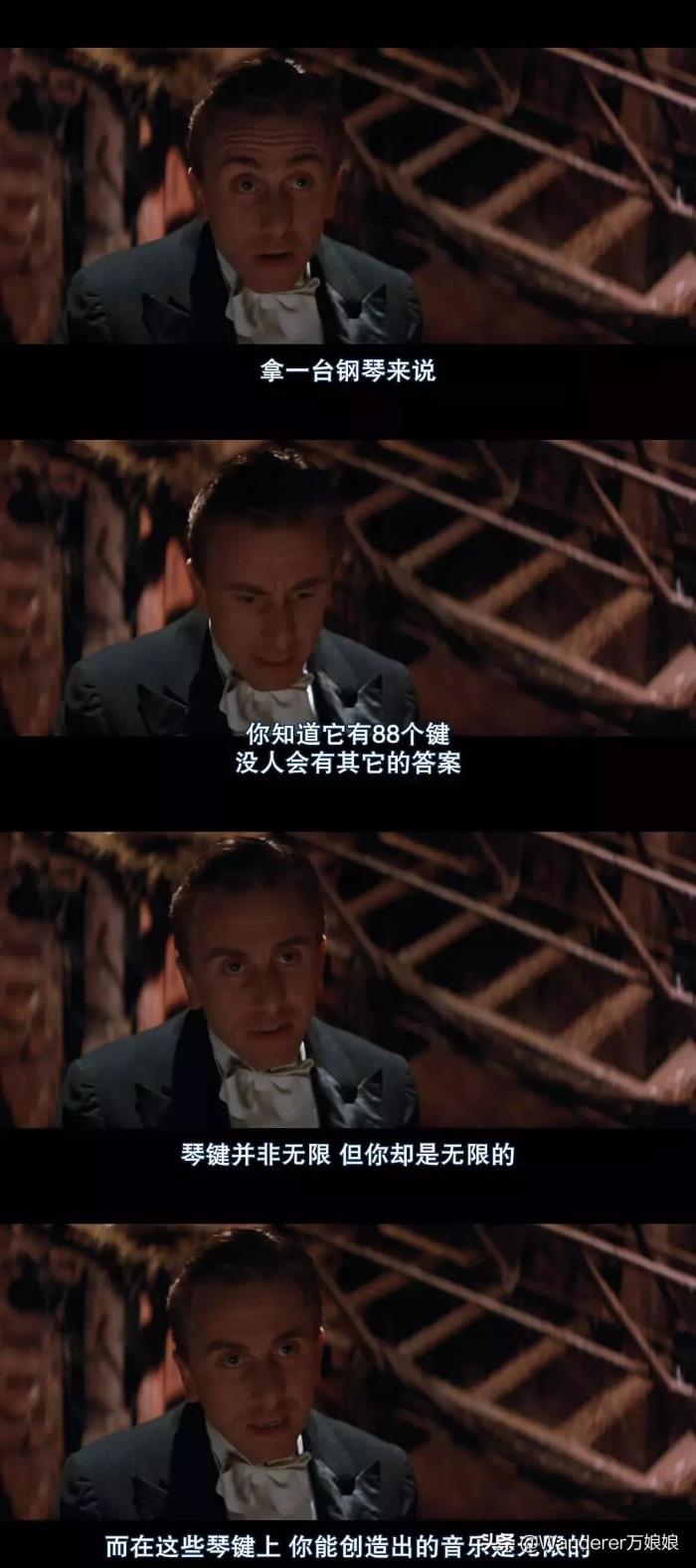 拿一部钢琴来说,从琴键开始,又结束。你知道钢琴只有88个键,随便什么琴都没差。它们不是无限的。你才是无限的,在琴键上制作出的音乐是无限的。我喜欢这样,我活得惯。