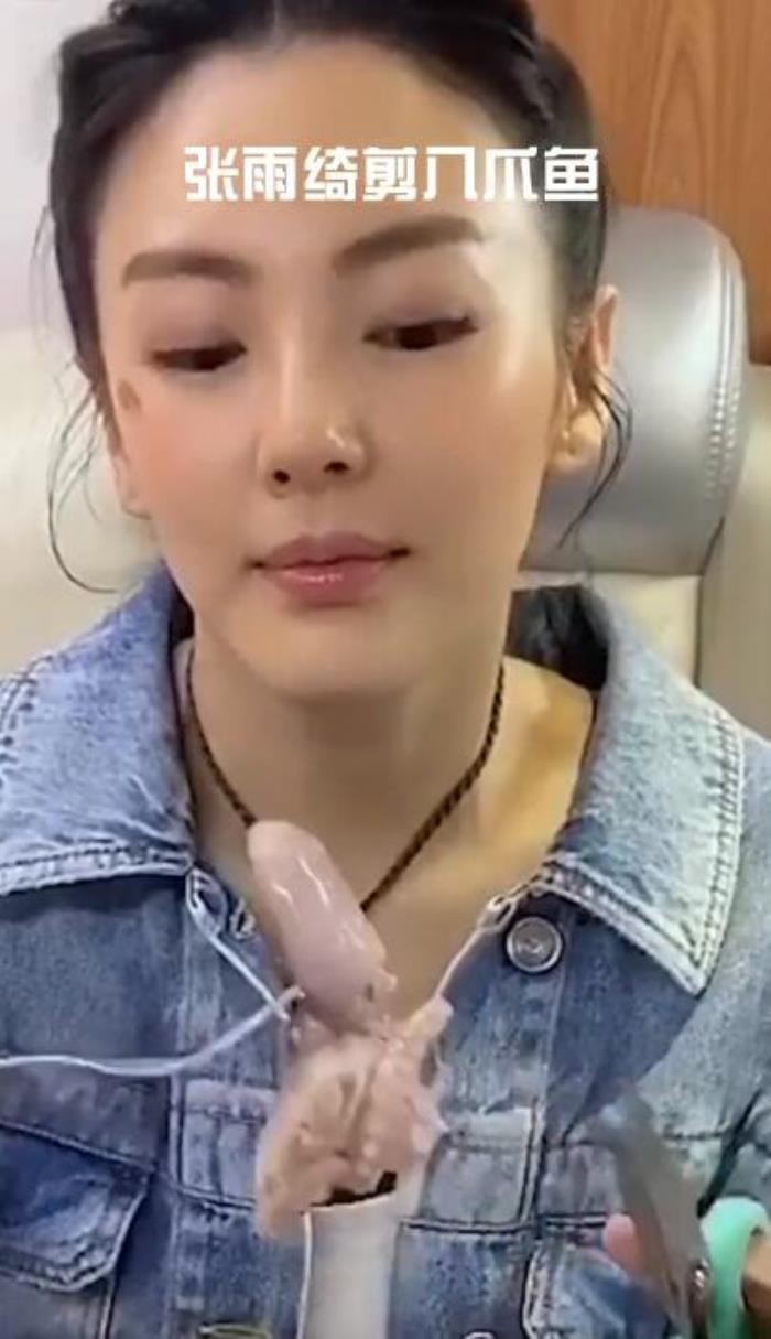 只见张雨绮笑而不语的对着镜头,然后用叉子用力的叉了一条八爪鱼上来,然后拿起剪刀,将八爪鱼的触脚一条一条的剪掉,时不时还露出“邪魅”的表情。