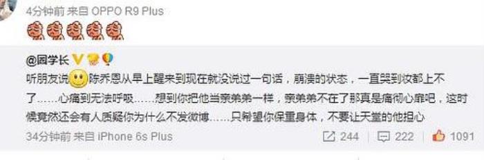 陈乔恩前天发微博之后,她也转发了,还亲自认证了每年陈乔恩都会去看望乔任梁的事实。