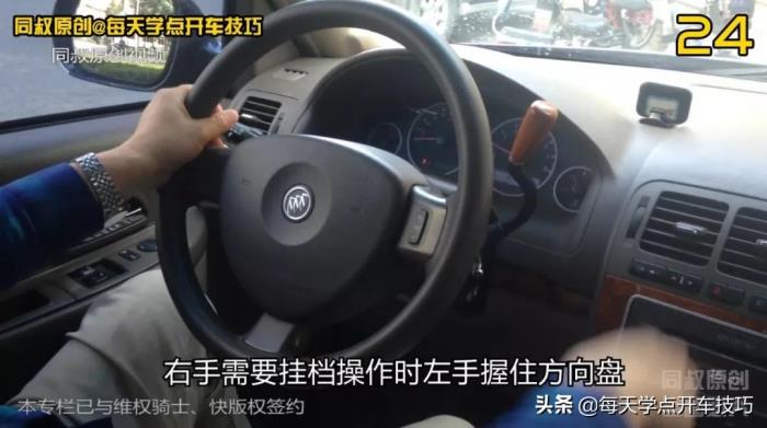 如果左手离开方向盘,那么右手就要握住,右手需要挂档操作时左手握住方向盘,