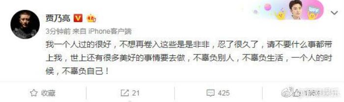过了一会儿,当事人贾乃亮也发博回应了,他称自己一个人过的很好,希望大家不要什么事都带上他……语气尽显疲惫。