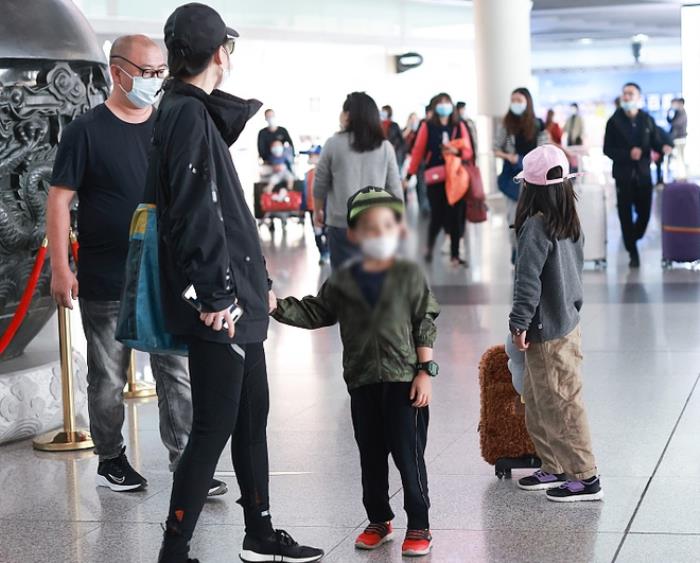 10月7日,梅婷和老公曾剑带着两个孩子,一同现身机场。