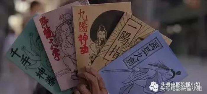 《功夫》中,还有一位卖武林秘籍的乞丐,他先拿出了一本《如来神掌》,问小男孩不要。后来,他又拿出了五本,分别是《千手神拳》《降龙十八掌》《九阳神功》《一阳指》《独孤九剑》。