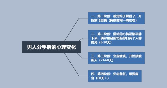 好了,那么接下来我们就来看看对方分手后的心理变化和相应的应对措施吧!