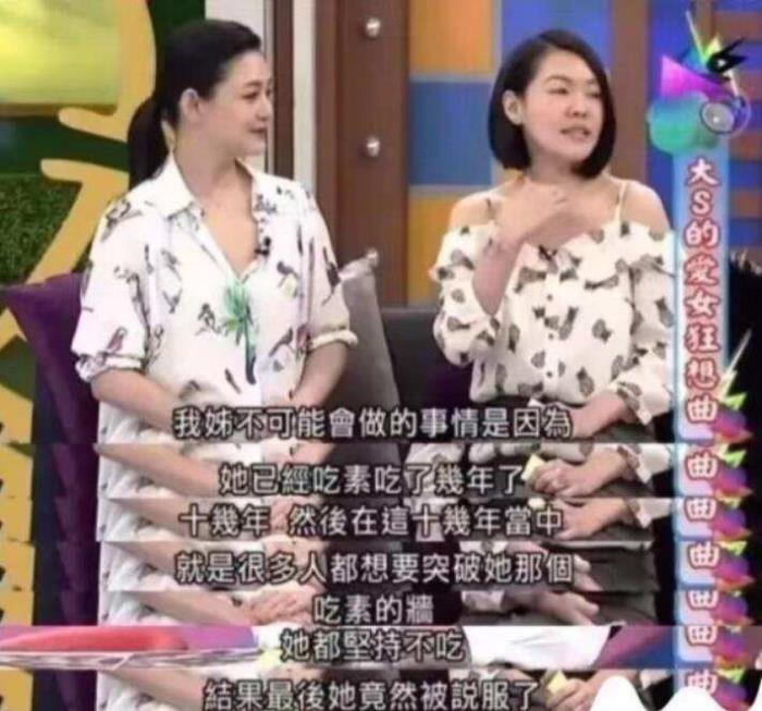 大S视美貌如生命,以美容大王自居,十几年为了保持身材一直吃素,宣称“要么瘦、要么死”,但为了给汪小菲生孩子,她开始吃肉,硬是把自己喂胖成路人大妈,生了一个不算,还生第二个,儿女双全不算,还要拼第三胎。