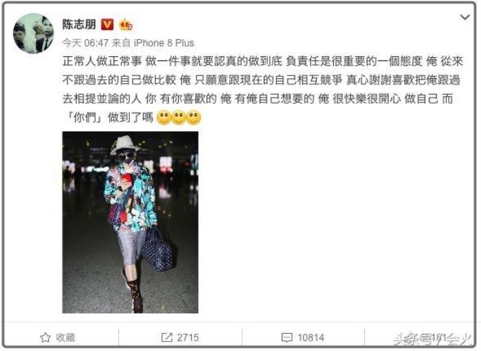 不过还有很多网友说,已经习惯这样的陈志朋了,毕竟,他这样的装扮,也不是第一次出现了。