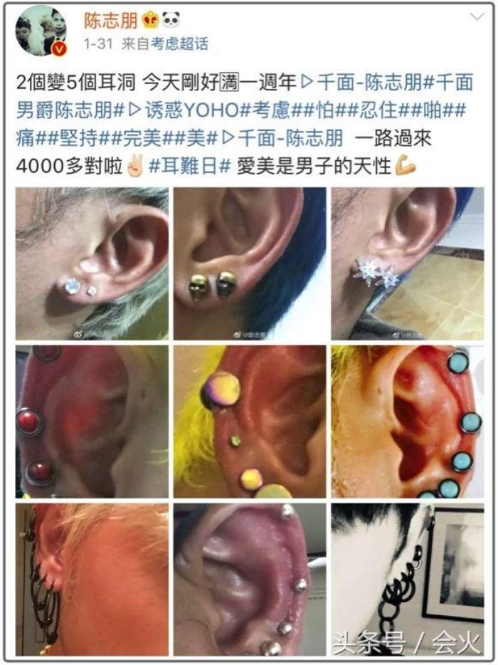陈志朋在40岁的时候,打了耳洞,目前已经有快四千个耳钉。