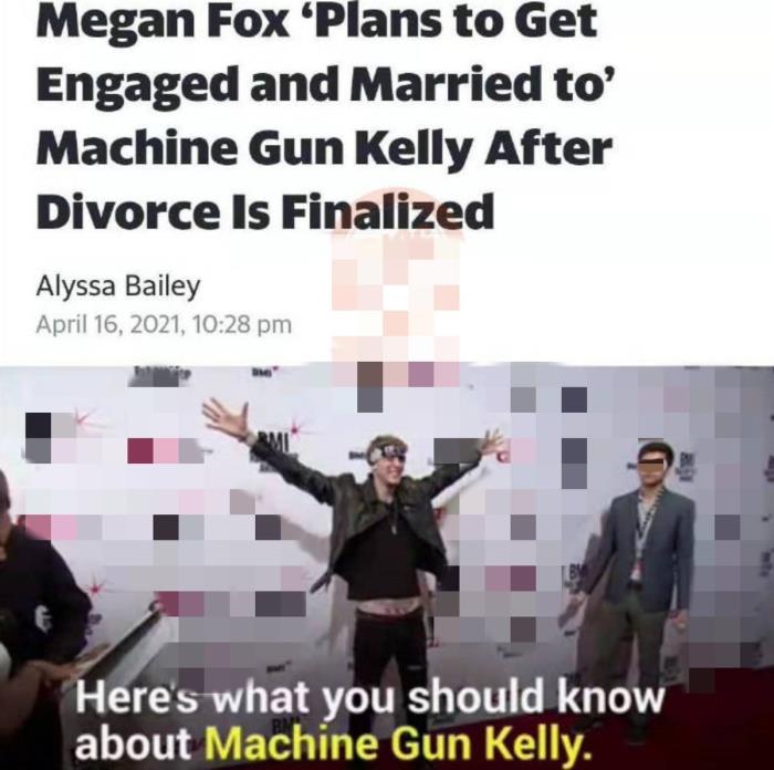 与前夫分手不久后,梅根与饶舌歌手Machine Gun Kelly传出绯闻。两人很坦然的承认了恋情,经常被拍到一起外出,感情非常甜蜜恩爱。