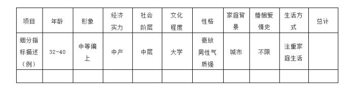 通过填写下面这张表有助于你了解自己对你选择的目标待婚男群体的需求的了解程度。越清晰越好。