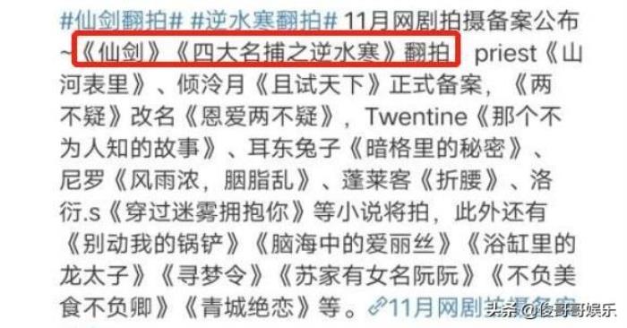 而且翻拍版仙剑属于鹅厂,预计拍摄的集数是40集。