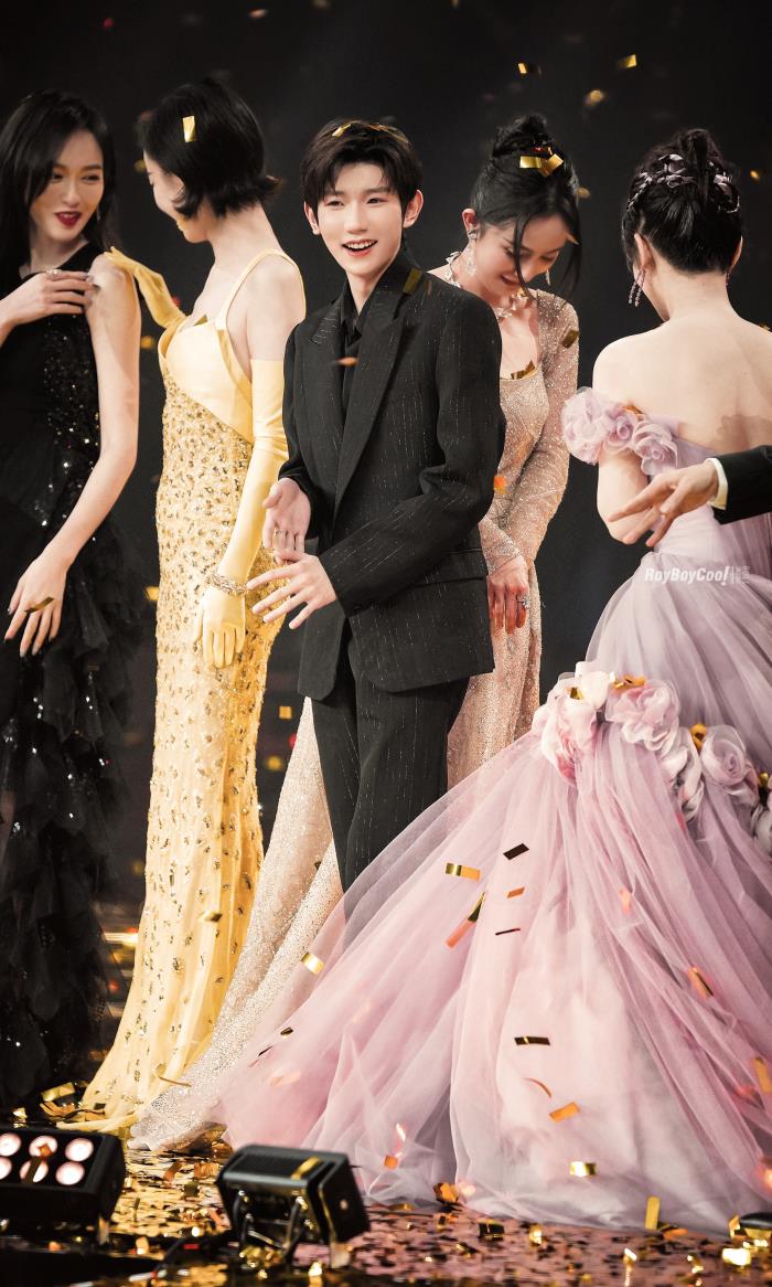 今天网上火爆了的一张世纪大合影,王源站在C位,左边是唐嫣倪妮,右边是杨幂杨紫,金色的彩条飘散在画面里,俊男靓女十分养眼,这是一张可遇而不可求的照片,一经晒出,大肆转载,直呼“王源站在中间动也不敢动,真像豪门姐弟照啊!”