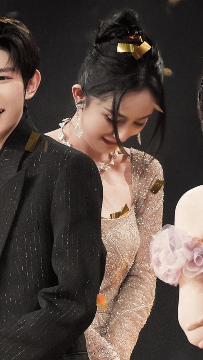 众所周知,杨幂身材很好,属于腰细胸围大的那种模特身材,正是因为这样,金飘带就这样落在她的摸胸礼服里面了,夹在里面甚是尴尬,而在这众目睽睽之下,是拨开还是不扒开呢?好像怎么处理都不是好的归宿,只能尴尬的笑笑了。