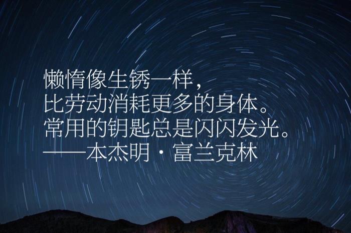 懒惰像生锈一样,比劳动消耗更多的身体。常用的钥匙总是闪闪发光。——本杰明·富兰克林
