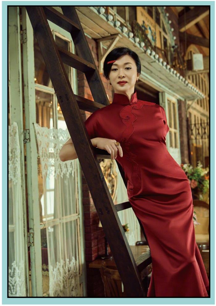 金星穿什么款式的旗袍都能体现出自己独特的韵味,这件暗红色的旗袍,简约的款式,清丽动人,平直的线条很好地勾勒出金星的身材曲线