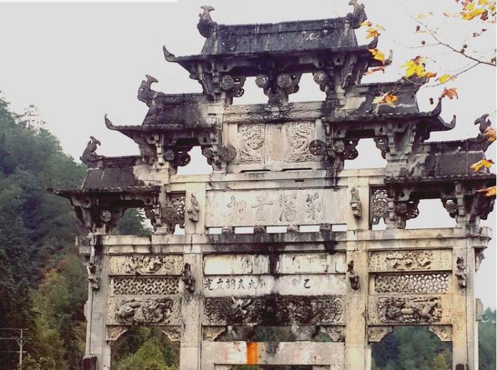 七座冲天的牌坊刻镂威严,冷峻高耸。有个妙龄女子主动上前讲解。她那激情的话语,将牌坊的清冷冲淡不少。