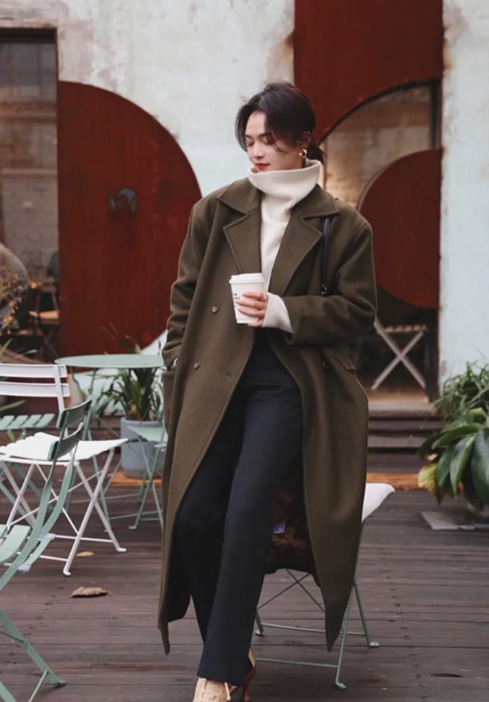 高个子女性只要不嫌腿长,可以任意挑选拖地款,搭配长款的羊绒大衣既大气又时髦。很多人觉得阔腿裤是高个子的专属,这种错误的认知让小个子对阔腿裤望而却步,毕竟穿上又宽又大的阔腿裤一不留神就拖地了,简直是压身高的存在。