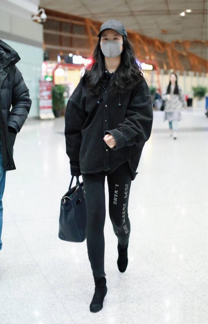 刘亦菲的穿搭风格太随性,健美裤搭配牛仔外套,特别活力显酷,这种风格其实还是有点半欧美风的,大款牛仔外套遮住臀部,秀出线条紧实的小肉腿,胖得很紧实,线条不臃肿看起来就很年轻活力。