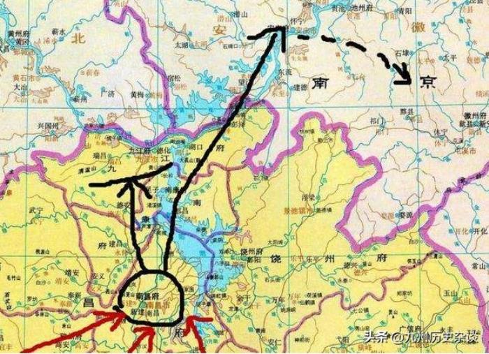 守仁曰:“不然。今九江、南康已为贼守,我越南昌与相持江上,二郡兵绝我后,是腹背受敌也。不如直捣南昌。贼精锐悉出,守备虚。我军新集气锐,攻必破。贼闻南昌破,必解围自救。逆击之湖中,蔑不胜矣。”众曰:“善。”-----《明史·王阳明传》