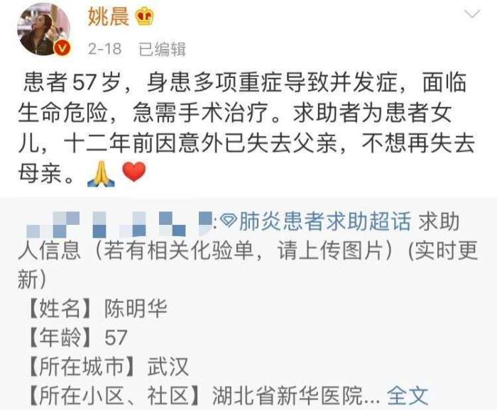而事实上,这样的事情姚晨做得不止一件。在疫情爆发以来,姚晨几乎把自己的微博变成了临时的疫情播报站,本着或许能救人的想法,每天帮忙转发各种求助信息。