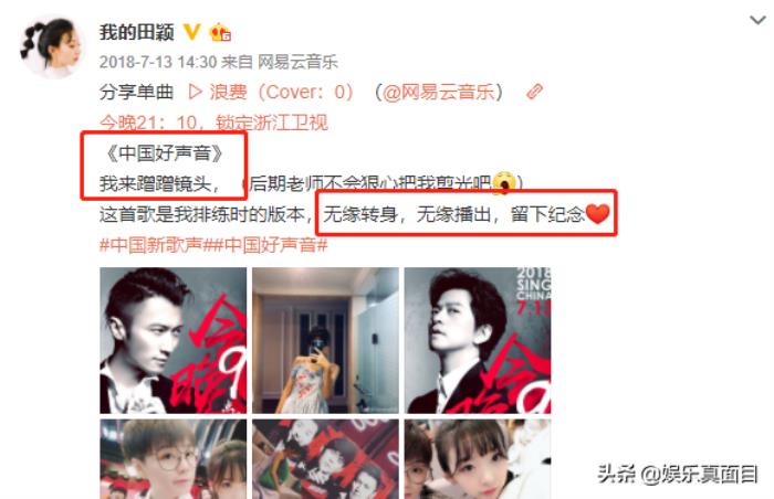 翻看田颖的微博发现,在2018年确实参加过《中国好声音》,带来的歌曲是《浪费》,但未获得导师转身。
