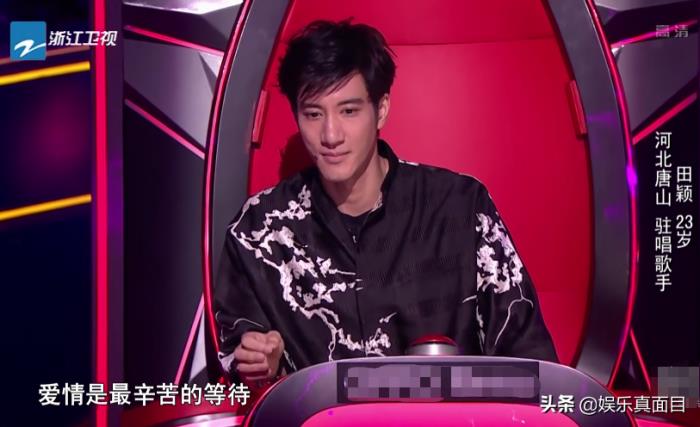 在田颖演唱过程中,王力宏虽然跟着节奏晃动着身体,一种很欣赏田颖演唱的样子,但迟迟没有转身。