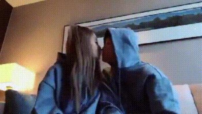 第一则视频中,两人在房间内拍摄情侣视频,靠肩,贴脸,背后抱轮番上演。