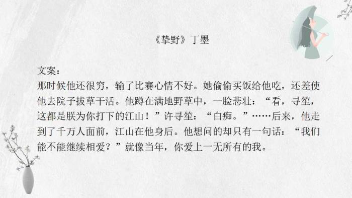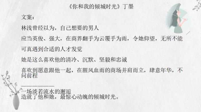 今日安。丁墨大大和八月长安、李雪琴一样,都是北大才女,众多书籍都已拍成影视剧或是在影视化的路上。普通读者,看原著不看剧,看剧不看原著,能够改编的尽善尽美的影视剧太少,如能看原著尽量看原著,小说读起来更原汁原味,每个人读起来也会有不一样的味道。今天是整理了大大的作品集,有早期作品,也有成名作及后大火的作品,除几个小短篇没有整理,其余都在。今日推荐希望你也喜欢。