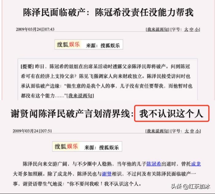 他的老爸陈泽民也自身难保,从2003年开始负债,2009年宣布破产。