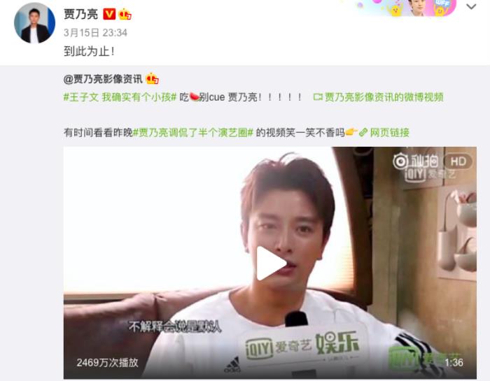 无奈之下,贾乃亮把2017年那段澄清视频转发了一遍,并且配文“到此为止”。