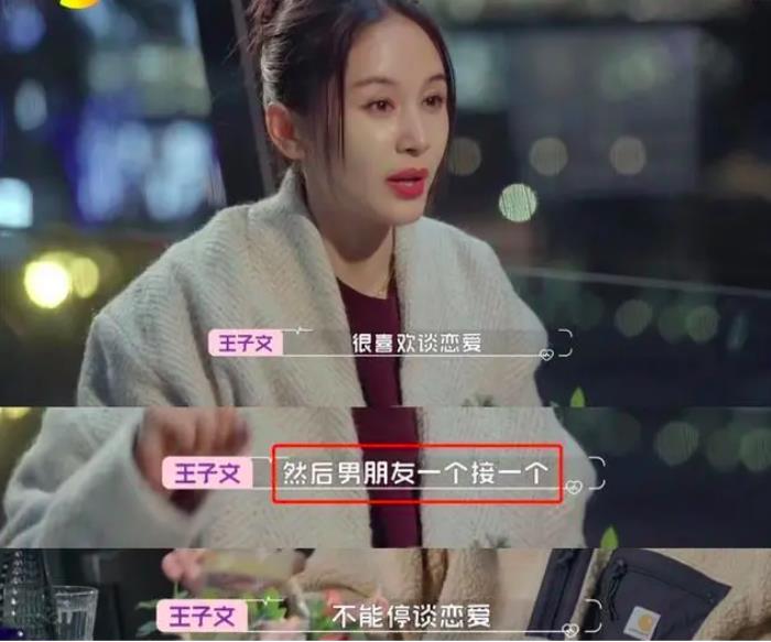 王子文曾经在综艺节目中说过自己的婚恋观,她说自己非常喜欢谈恋爱,男朋友一个接一个。但是在一个接一个的男友里,并没有一个叫贾乃亮的男艺人。
