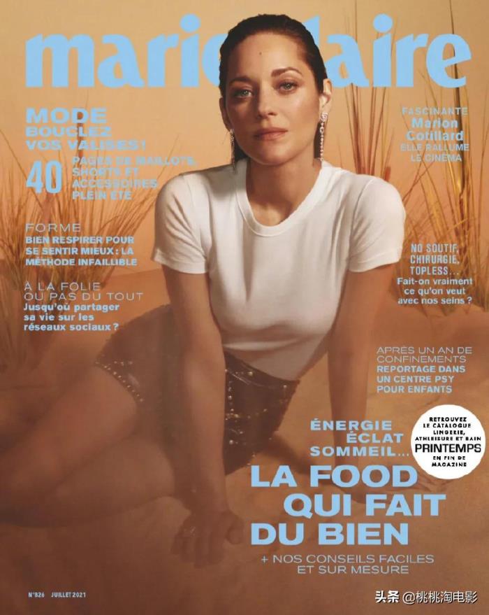 法国版Marie Claire7月新刊迎来本国影后玛丽昂·歌迪亚,大地色系妆容,简单的白色T恤,依然美丽得毫不费力,迷人得理所当然。