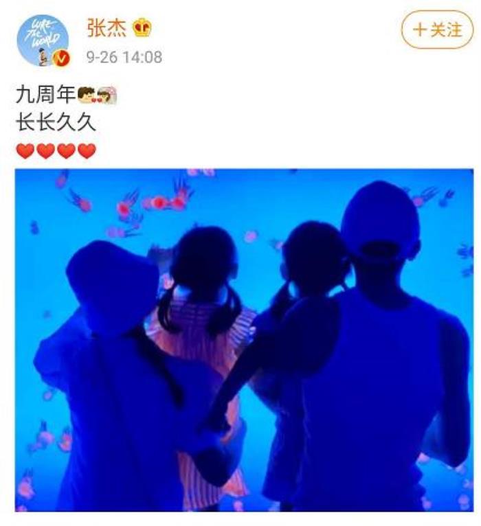 张杰还在图片旁边配文九周年,长长久久,而谢娜则配文九周年结婚纪念日,这就是爱嘻嘻嘻,两人恩爱秀得相当大方。