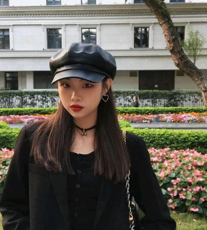 像这种有帽檐的报童帽,真的挺适合圆脸、大脸的女生们。圆脸女生佩戴的时候,可以把两边的头发撩到耳后,露出脸蛋来,而对于脸型比较大的女生,就建议把头发放下,尽量留刘海,以及用两边的头发进行遮掩。百搭的黑色款,什么肤色都适合,关键是无论怎么搭配衣服都好看。