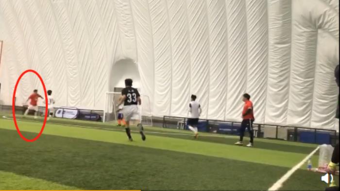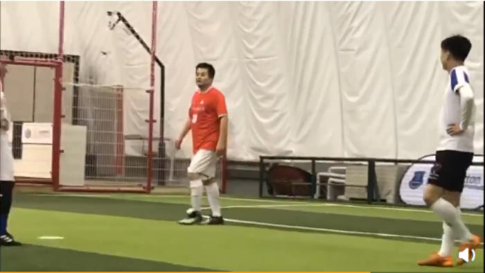 他在球场上活力四射地奔跑,从中场跑到球门右侧,一脚猛射踢进了一个球。