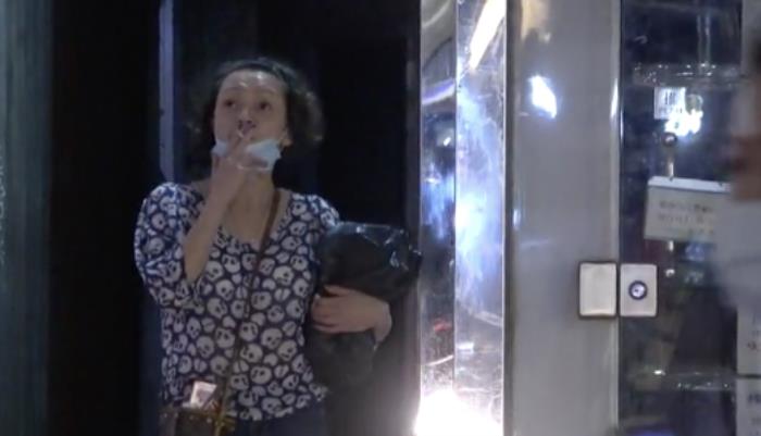 从画面中,我们可以看到张柏芝的妈妈穿着简单,黑白印花上衣配上简单的牛仔裤,以及一成不变的蓬松泡面头,手里还拿着一个黑色大包,整体看起来显得有些落魄。