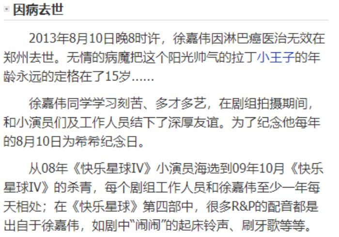 发展一帆风顺也好,人设崩塌也罢,不管怎么说,以上提到的小演员都健康快乐地长大成年了。可惜的是,《快乐星球》中有一位小演员没能顺利长大,他就是第四部里的小演员徐嘉伟。