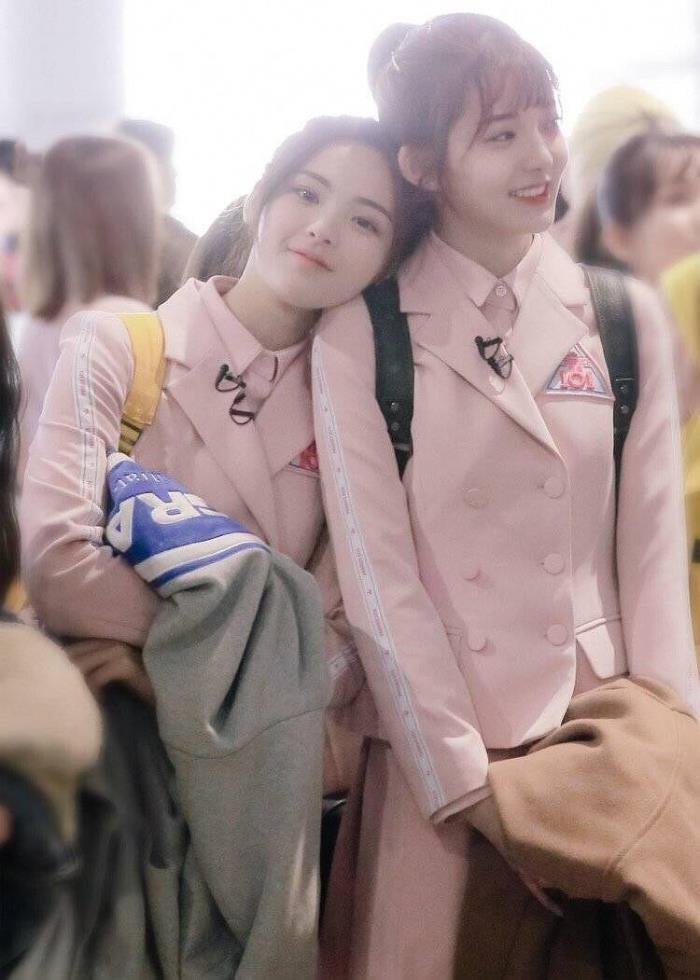 后来高铁站,王晴和杨超越站一起的靠肩合照圈粉无数,纷纷夸赞是创1里最高颜值。